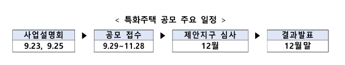 특화주택 공모 절차 및 주요 일정